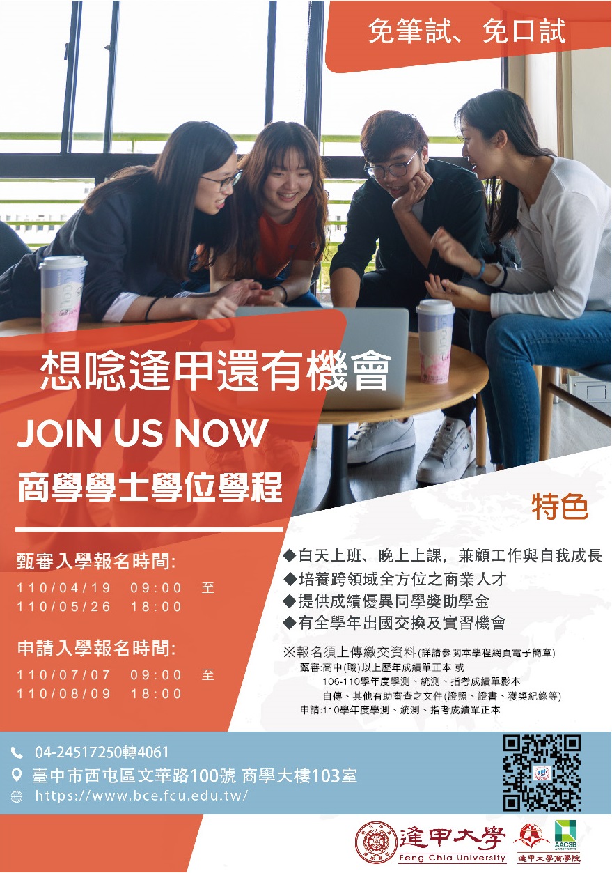 110學年度逢甲大學商學學士學位學程招生海報