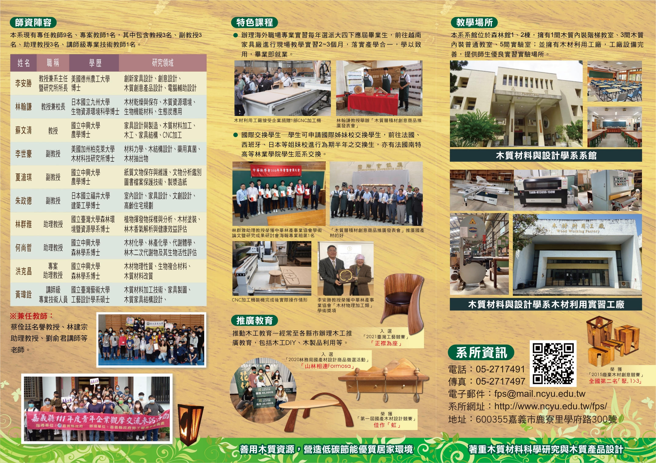 二、歡迎對於木質材料相關領域具濃厚興趣之優秀學子報考,誠摯邀請師生蒞校參訪與交流。