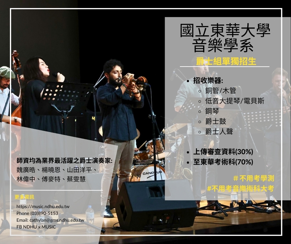 一、爵士組單獨招生,免考學測與音樂術科大考:
