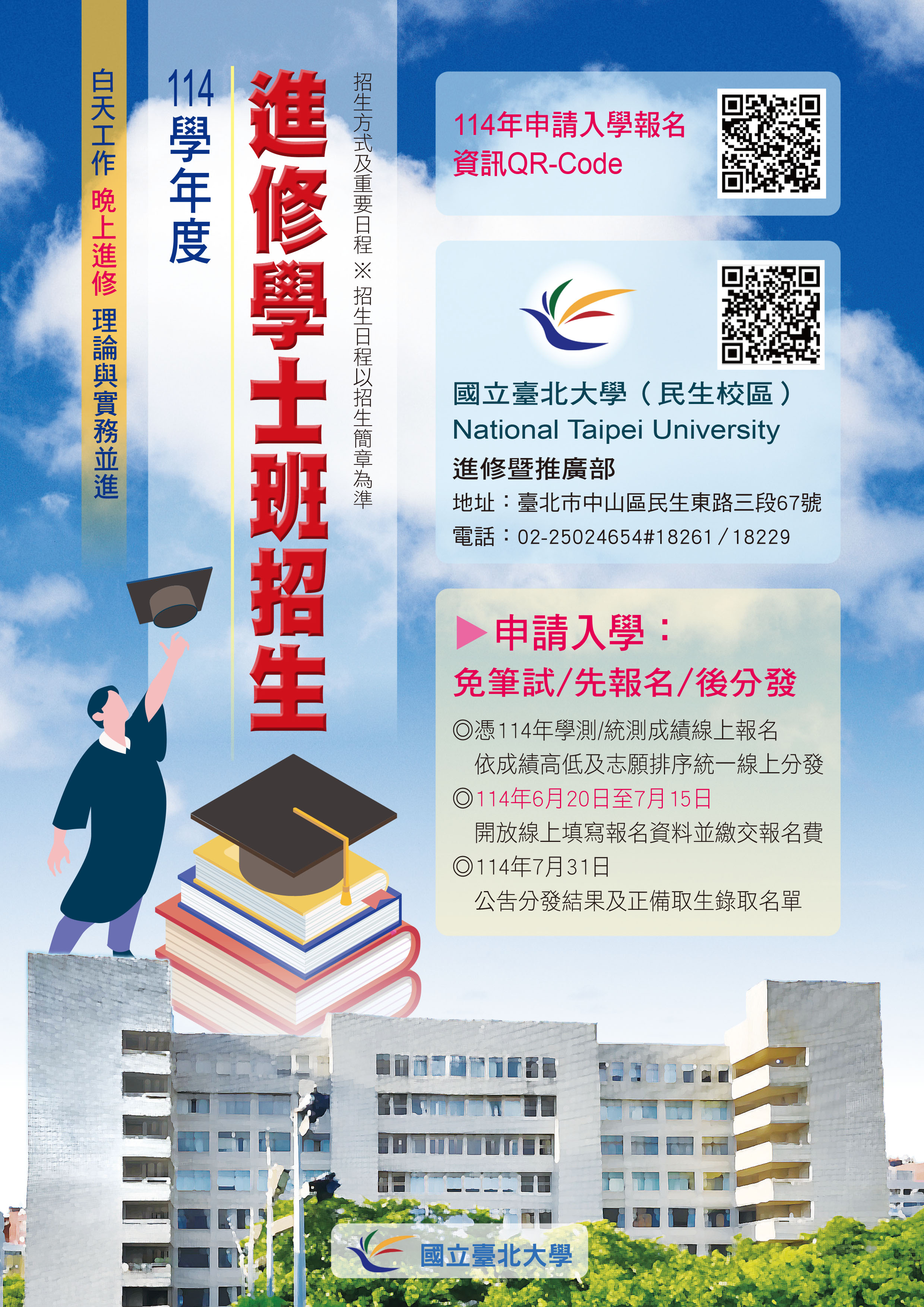 國立臺北大學114學年度進修學士班申請入學招生訊息