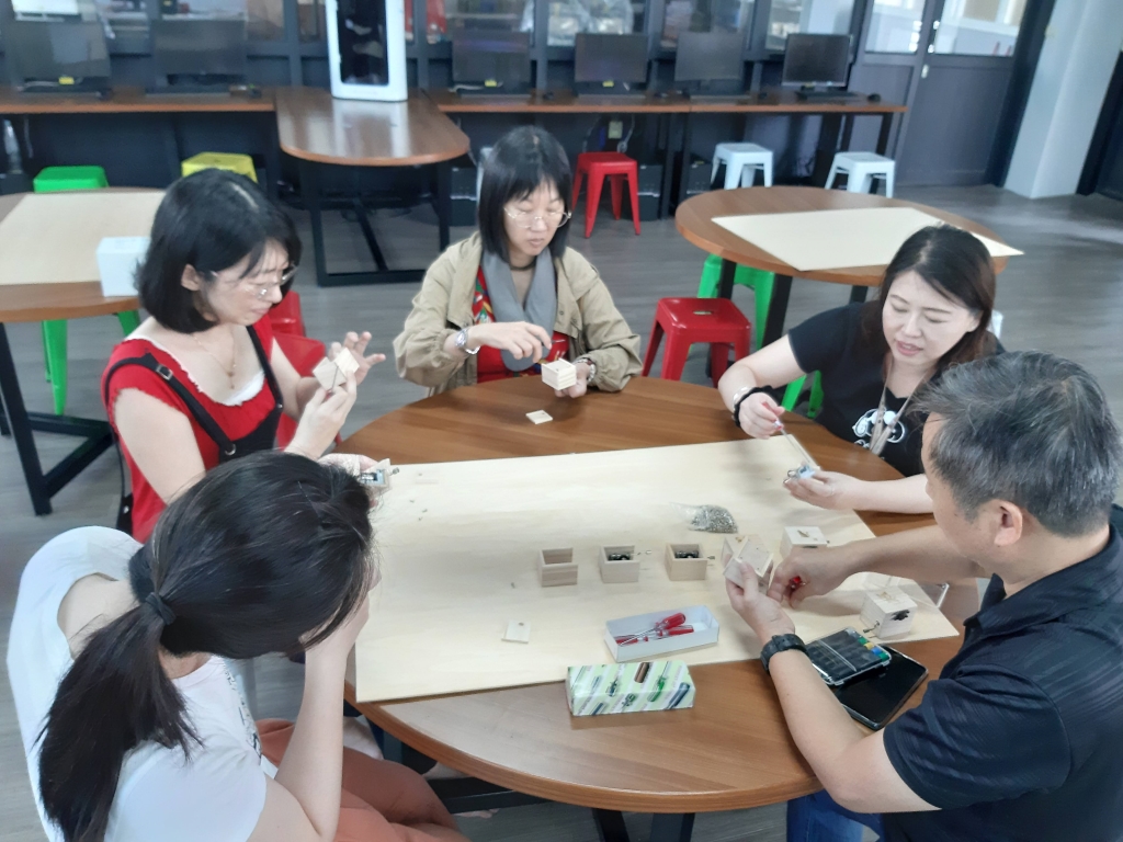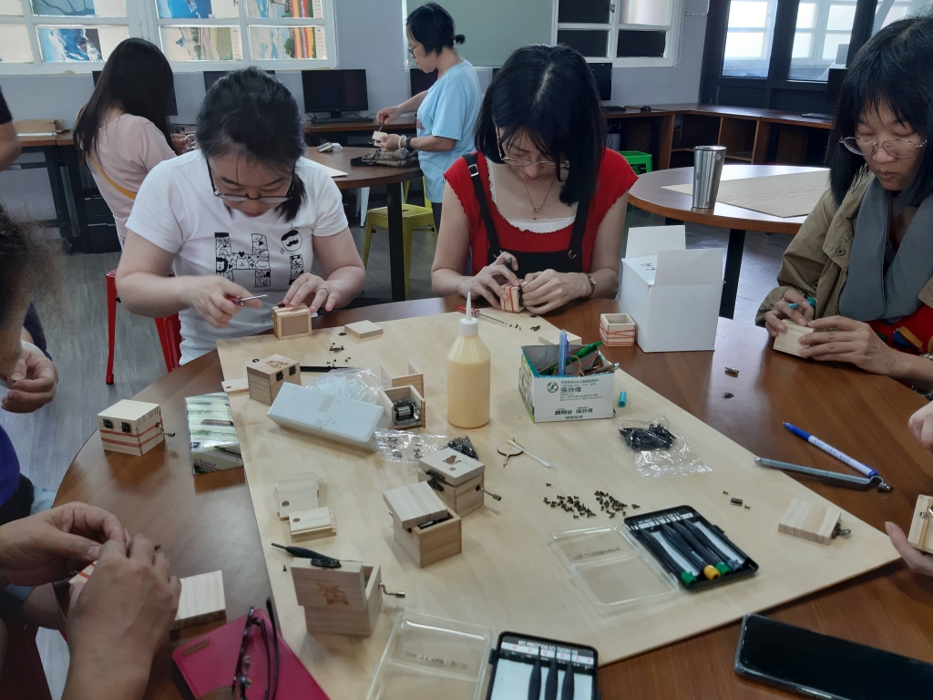 從木板、到分層設計、創客精神手作實踐,得以落實在小小的音樂盒裡,通過最後打磨稜角、雕刻上屬於自己獨一無二的圖騰,融入創客木工魂。