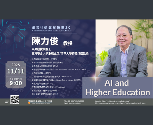 國立中央大學訂於114年11月11日辦理線上講座:《國際科學教育論壇系列20》—— 「AI and Higher Education」