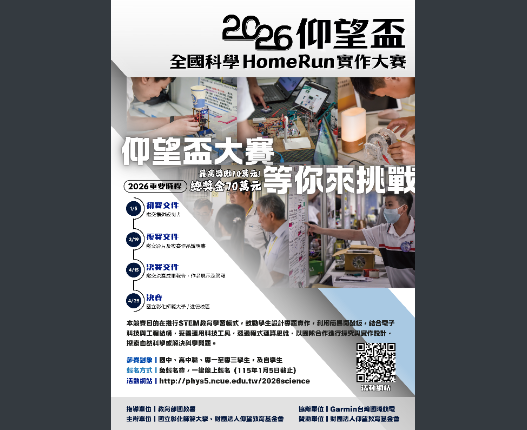 二、「2026仰望盃全國科學HomeRun實作大賽」訂於115年4月25日(星期六)假國立彰化師範大學舉行。