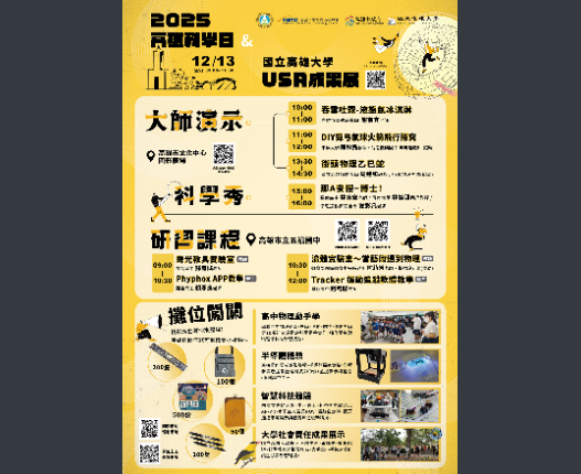 國立高雄大學科學教育中心謹訂於114年12月13(星期六)舉辦「高雄科學日暨國立高雄大學USR成果展」