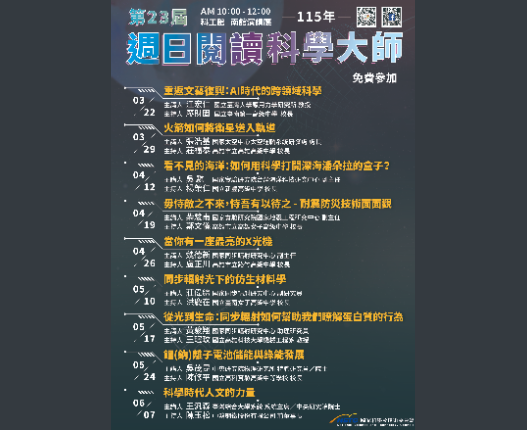國立科學工藝博物館辦理國科會補助「第23屆週日閱讀科學大師」系列科普講座