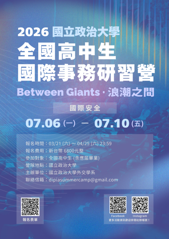【暑假營隊】國立政治大學外交學系「2026全國高中生國際事務研習營」