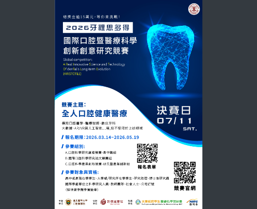 臺北醫學大學辦理「2026牙裡思多得國際口腔暨醫療科學創新創意研究競賽」競賽海報及辦法