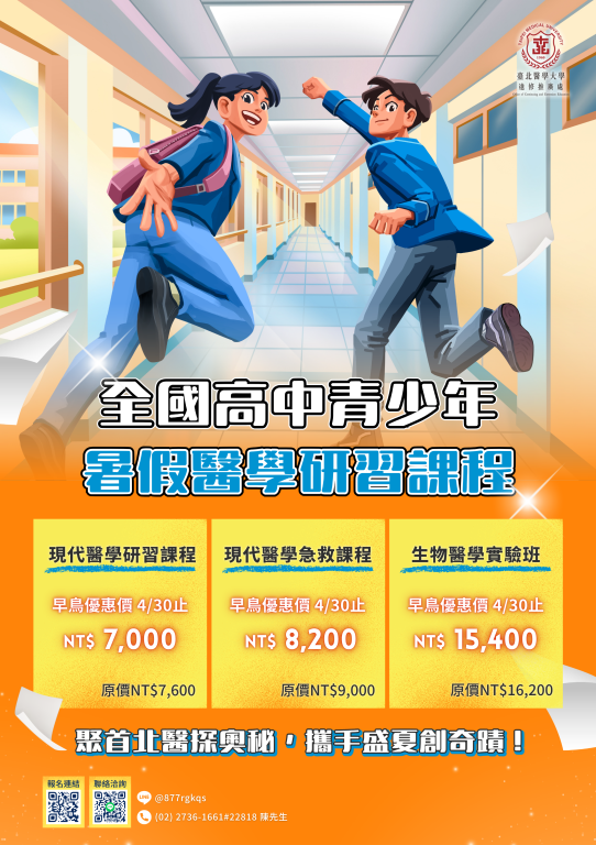 【暑假營隊】臺北醫學大學辦理【全國青少年高中暑假研習課程】系列活動