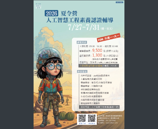 二、因應全國會考期程,該課程已調整為115年5月23日至6月27日每週六上課(6月20日端午連假停課),歡迎想知道AI到底怎麼運作(如ChatGPT、AI繪圖及影音生成)有興趣之學生報名參加,協助學生提前培養AI應用能力與未來升學競爭力。