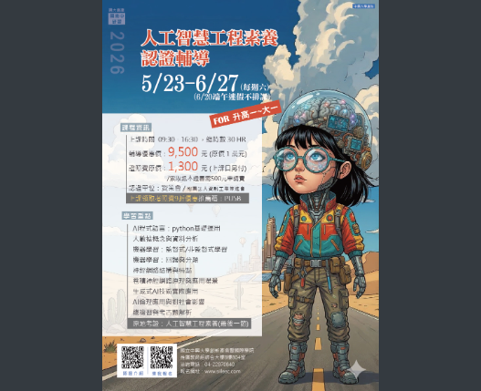 國立中興大學辦理「人工智慧工程素養認證輔導」及「Python程式系列」等課程最新招生資訊、海報及簡章