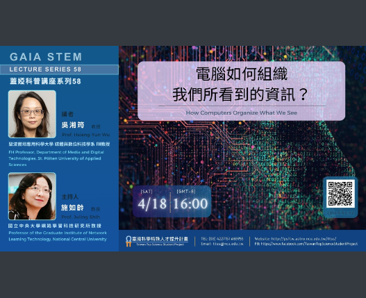 國立中央大學訂於115年4月18日辦理線上講座:《蓋婭科普講座系列 58》——「電腦如何組織我們所看到的資訊?」