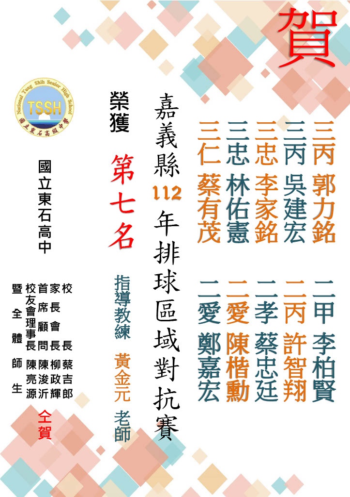 賀嘉義縣112年排球區域對抗賽高中女子組冠軍、男子組第7名
