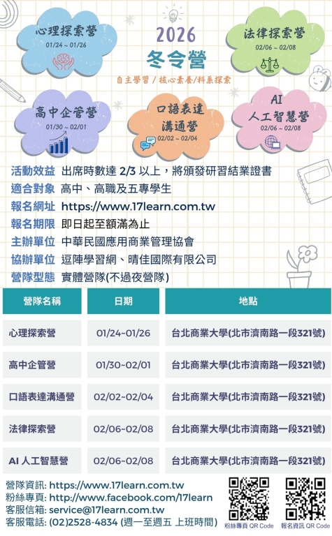【寒假營隊】中華民國應用商業管理協會主辦【2026 寒假冬令營】