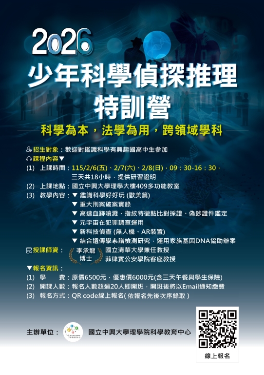 【期中活動】國立中興大學理學院科學教育中心辦理「2026少年科學偵探推理特訓營」