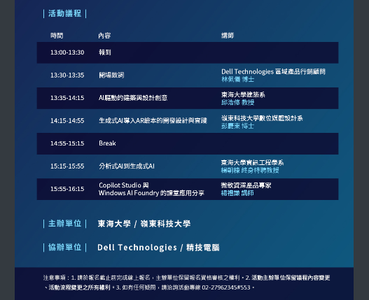 東海大學與Dell, Microsoft, 精技電腦公司合辦「生成式AI驅動的設計實務與沈浸式教學」活動