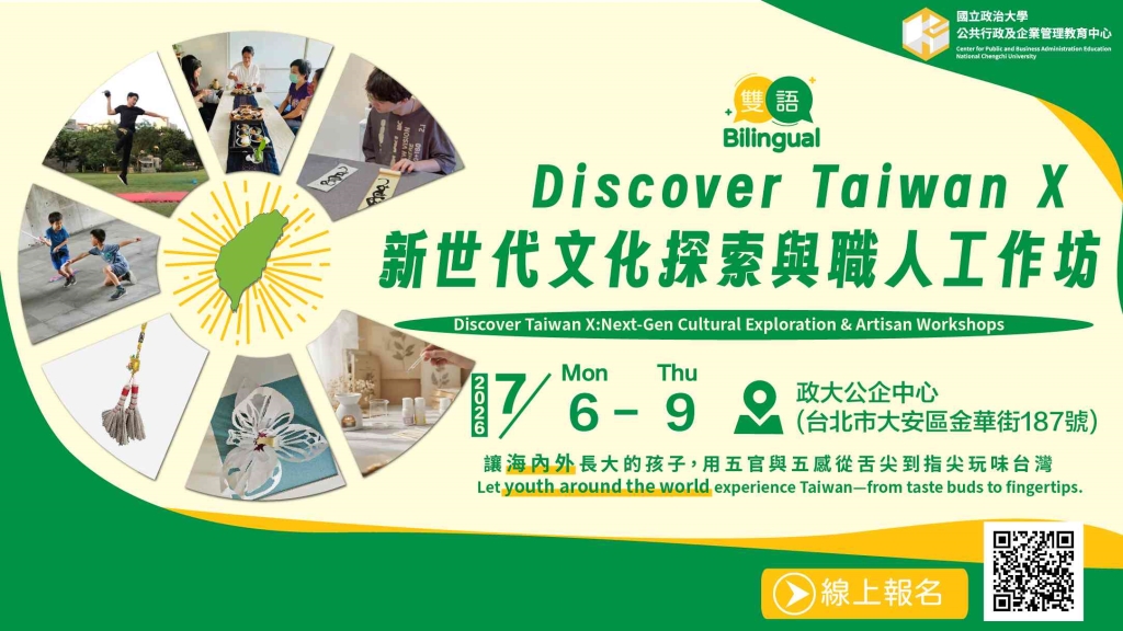【暑假營隊】國立政治大學公共行政及企業管理教育中心辦理「Discover Taiwan X 新世代文化探索與職人工作坊